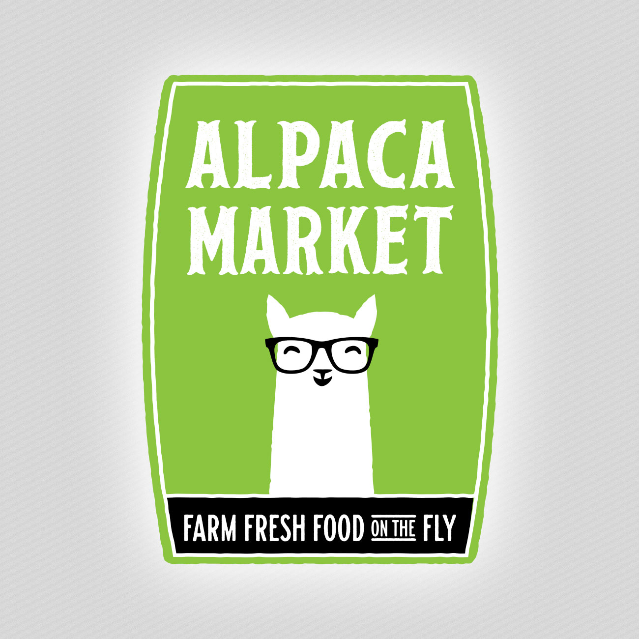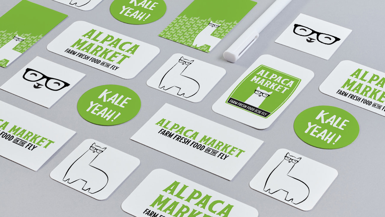 Logo & package branding for fresh food vending machine startup Alpaca Market. They came to us with the idea of creating a slightly nerdy alpaca to act as their mascot, and from there we came up with “Gary” – he’s smart and he loves his greens.