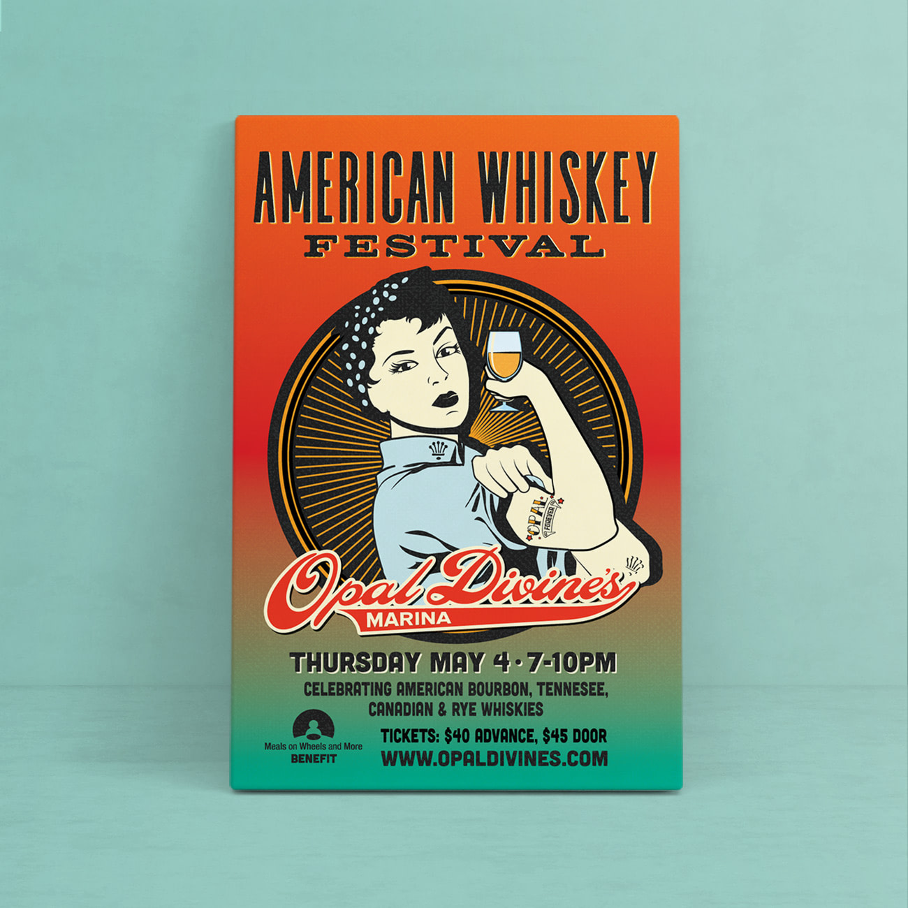 Poster design for Opal Divine’s 2017 American Whiskey Festival. Project included digitally printed posters and coordinating newsprint ad campaign.